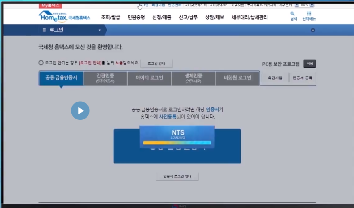 1. 홈택스(https://www.hometax.go.kr/)에 접속하여 로그인한다.