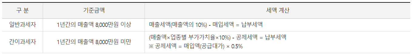 ※일반과세자: 연간 매출액이 8000만 원 이상이거나 간이과세가 배제되는 업종이나 지역에서 사업을 하는 경우 일반과세자로 등록을 해야 합니다.