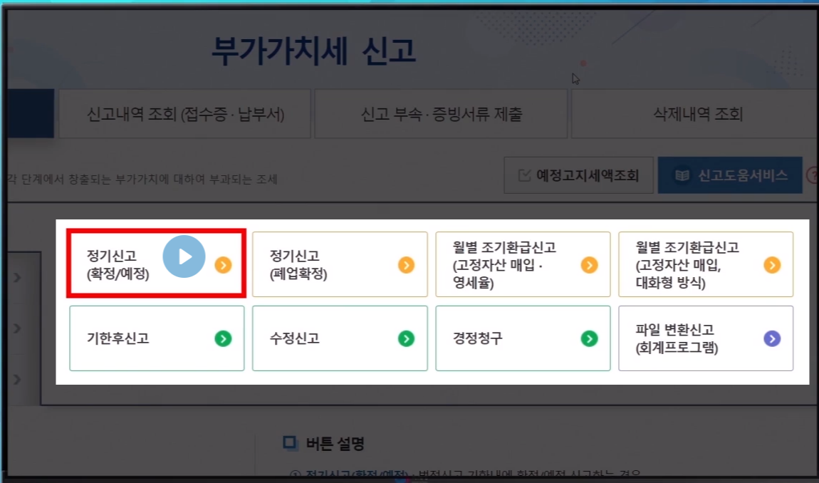4. 정기신고(확정/예정) 버튼을 클릭한다.