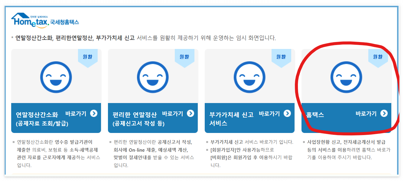 1. 국세청 홈택스(https://www.hometax.go.kr/ )에 접속합니다.