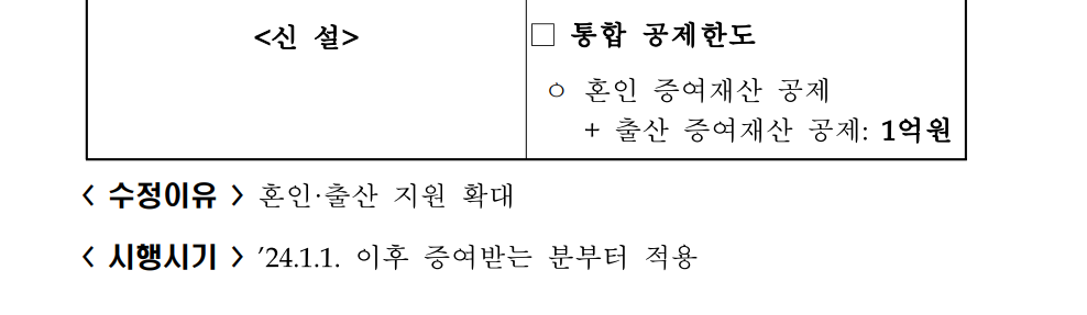 ※단, 혼인 증여재산 공제와 출산 증여재산 공제의 통합공제 한도는 1억 원